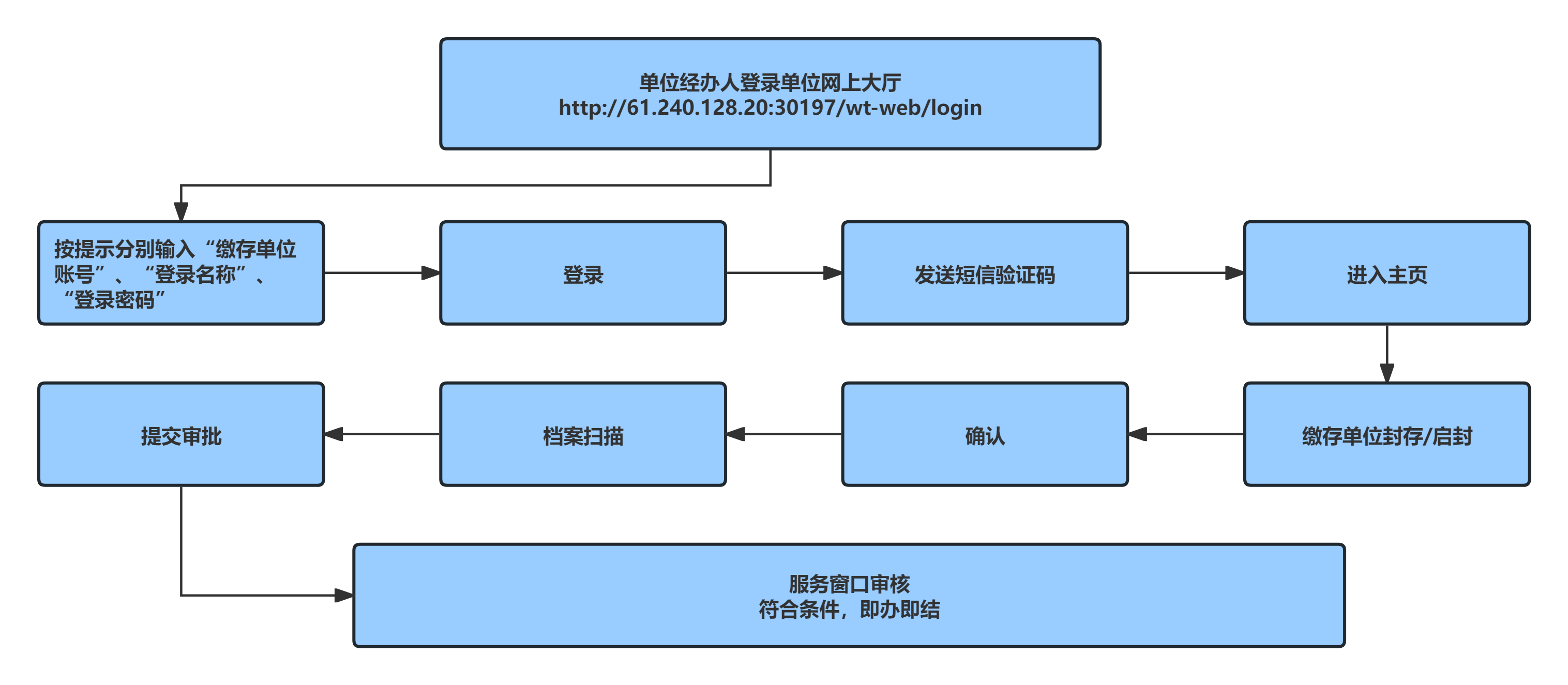 (一)单位启封线下办理流程:单位经办人携带上述材料到公积金服务窗口办理,如手续齐全,即办即结。