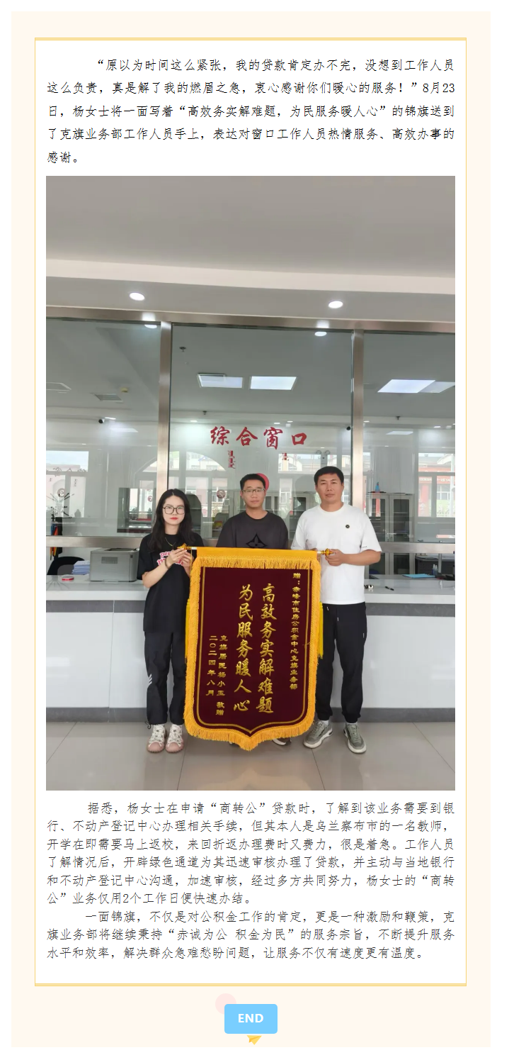克旗业务部|倾心为民解忧,真心服务获赞
