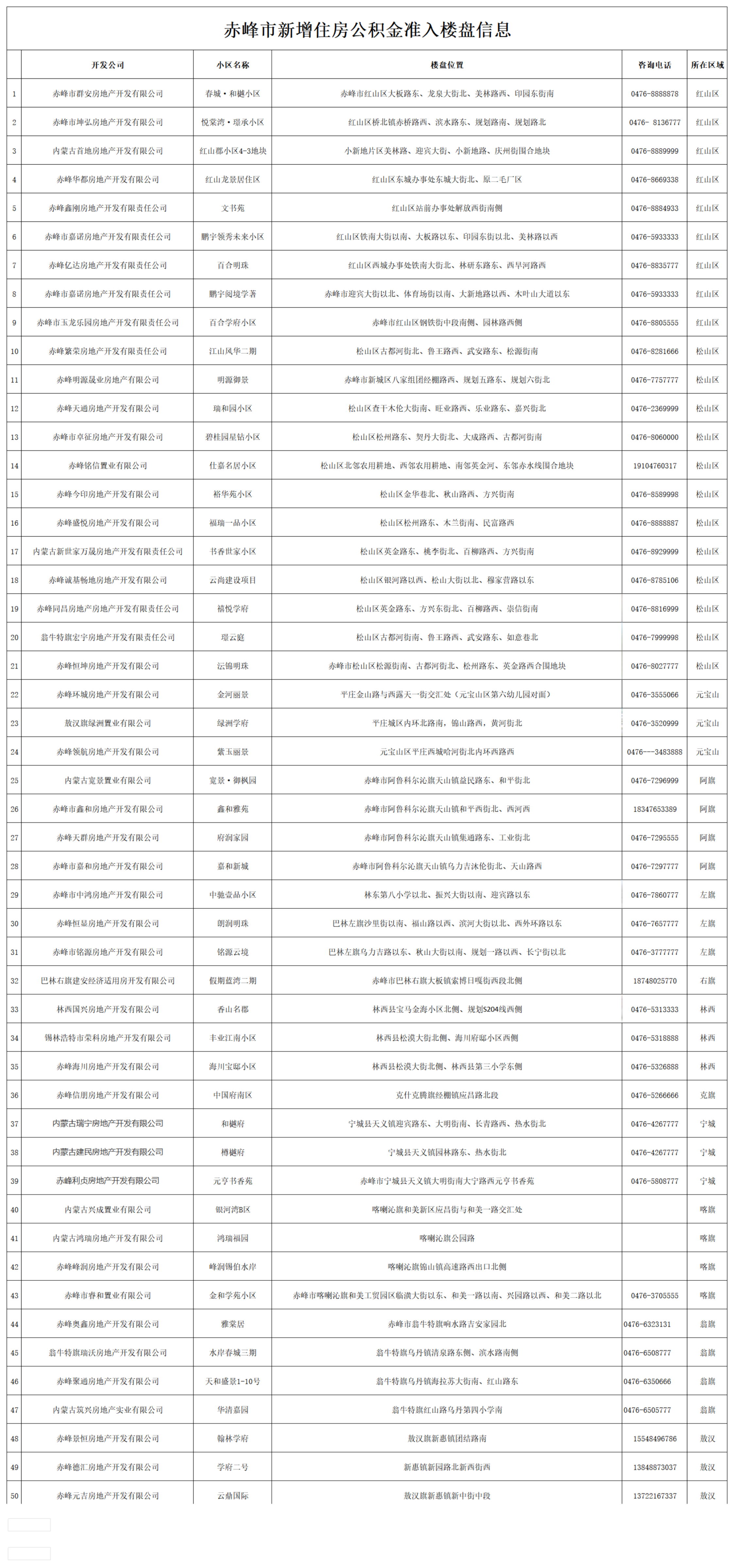 赤峰市新增住房公积金准入楼盘信息(2024年第1期)