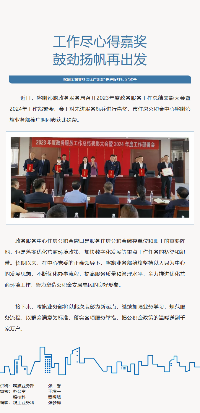 喀旗公积金|徐广明获“先进服务标兵”称号