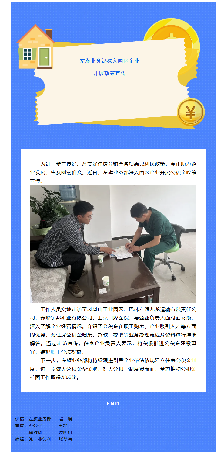 左旗业务部深入园区企业开展政策宣传